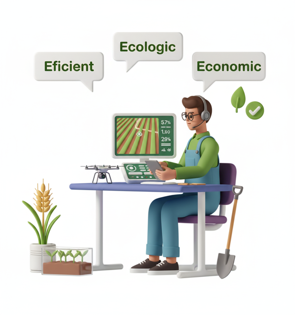 Analizam circumstantele, cautam solutii, propunem variante, explicam rezultatele asteptate si costurile implicate, tragem concluzii impreuna cu fermierii, implementam solutiile, masuram rezultatele.